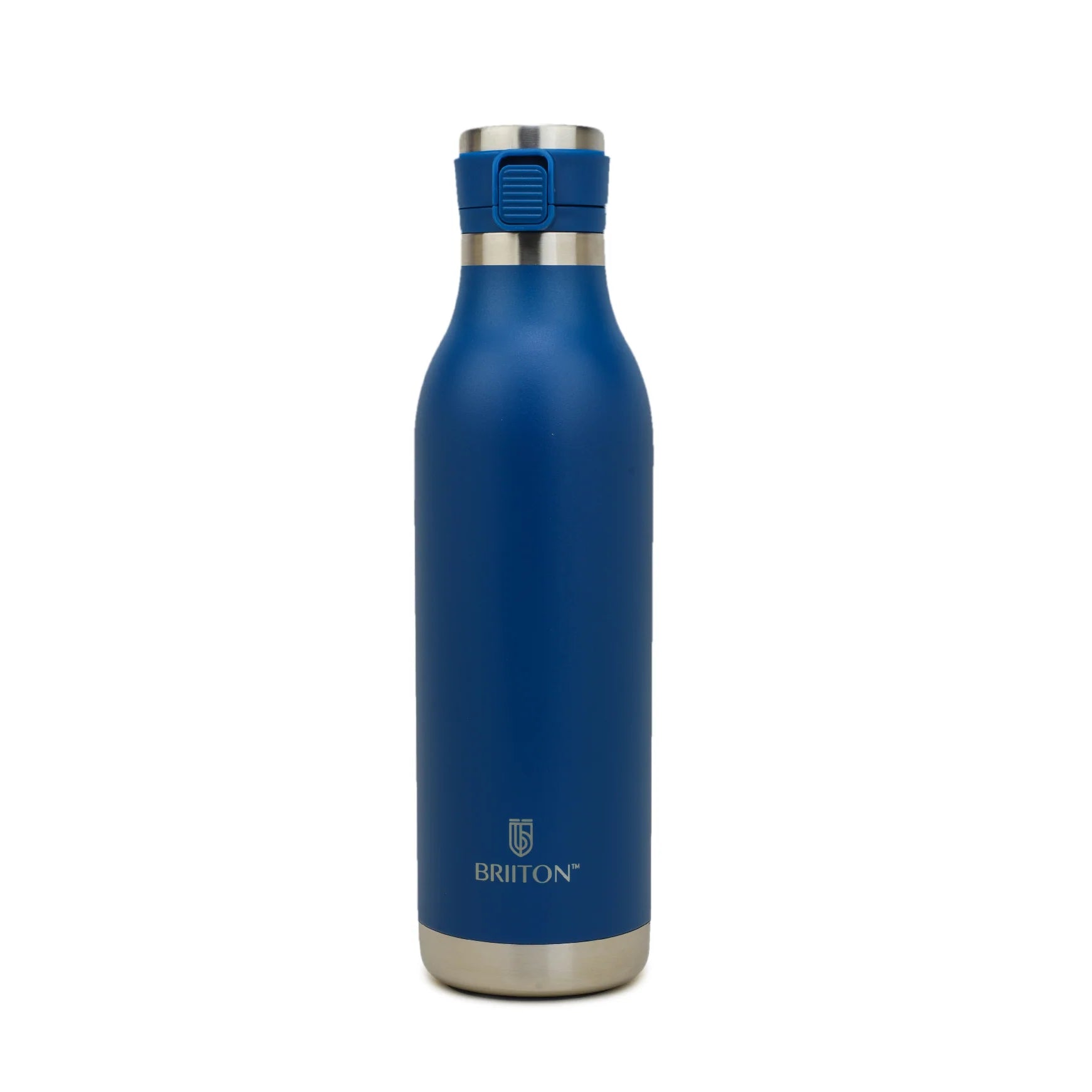 The Briiton Activo 750 ml Vacuum Bottle features a leak-proof cap with a secure lock and push button mechanism, ensuring spill-free portability. Its easy sip lid offers convenient access to hydration on the go. The bottle's powder-coated finish guarantees a durable, long-lasting color that resists wear and maintains its sleek appearance. Ideal for professionals seeking reliable, stylish thermal storage.