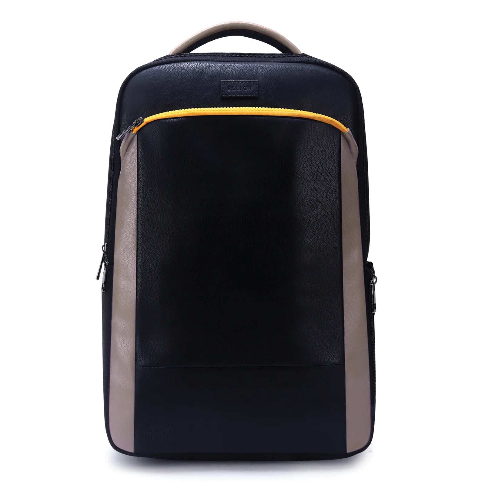 The Elliot Elite IV Series Black Vegan Leather & Canvas Fabric Backpack combines contemporary design with practical functionality for professionals and travelers. Constructed from premium imported vegan leather paired with durable canvas fabric, this backpack delivers both aesthetic appeal and environmental responsibility. The sustainable material composition offers the sophisticated appearance of genuine leather without compromising ethical standards. Engineered for organization, the backpack features multiple compartments including a dedicated laptop section that safeguards your device during transit. The spacious main compartment accommodates daily essentials while maintaining structural integrity through quality craftsmanship. This versatile design transitions seamlessly between professional settings and casual adventures, making it an essential accessory for those who demand both style and substance in their everyday carry.