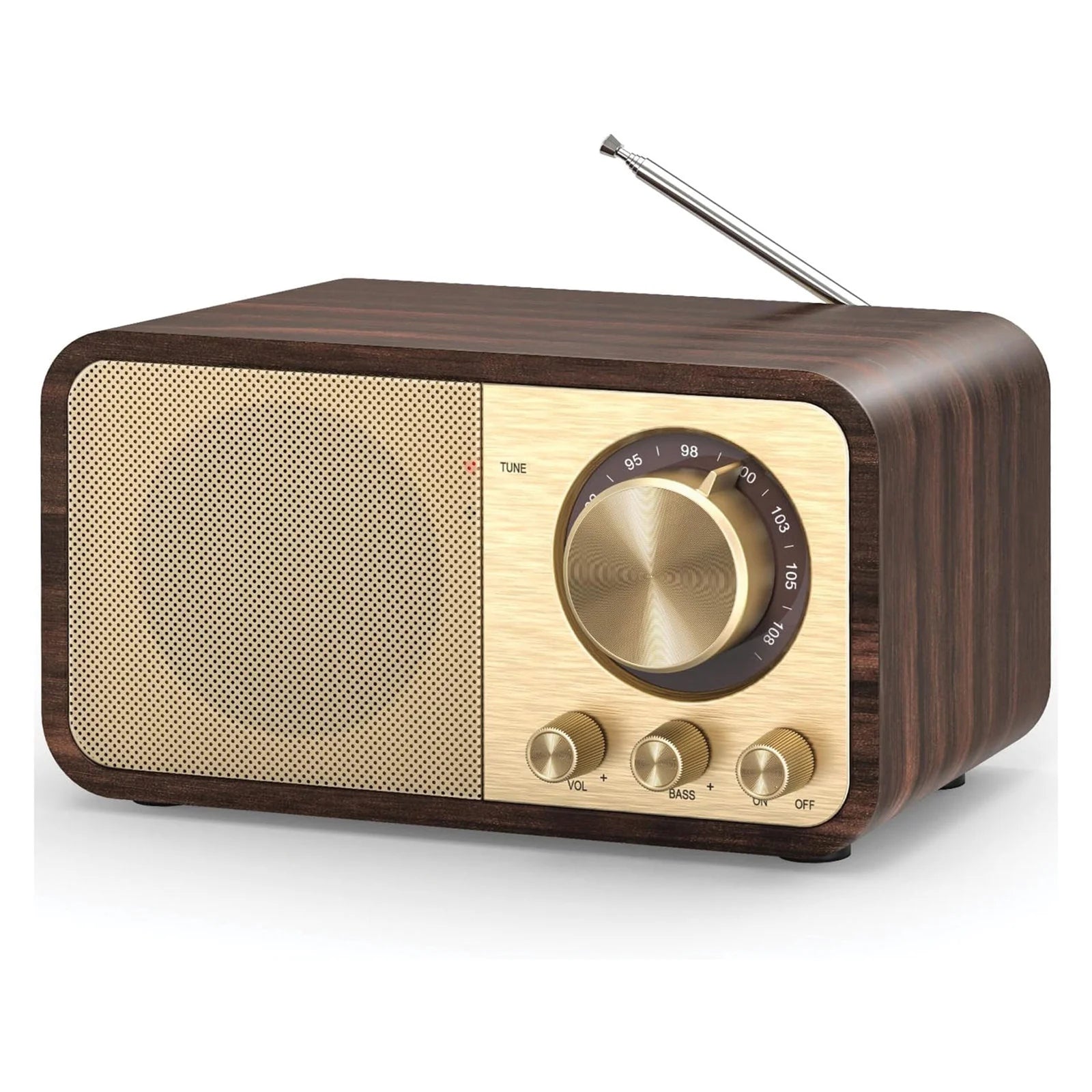 The Elliot Trans Series Wooden Retro Portable Speaker seamlessly blends vintage aesthetics with contemporary audio technology. Featuring a premium wooden cabinet and elegant golden metallic front panel, this speaker serves as both a functional audio device and an attractive décor accent. Connectivity options abound with Bluetooth for wireless streaming from smartphones, laptops, and tablets, alongside USB, TF card, and AUX inputs for flexible playback. The integrated FM radio with antenna provides traditional broadcasting access with reliable signal reception. Delivering 5W RMS output, the speaker produces well-balanced, rich sound suitable for personal listening spaces. Its portable design makes it ideal for home use, offices, or travel, combining nostalgic charm with the convenience of modern wireless technology.