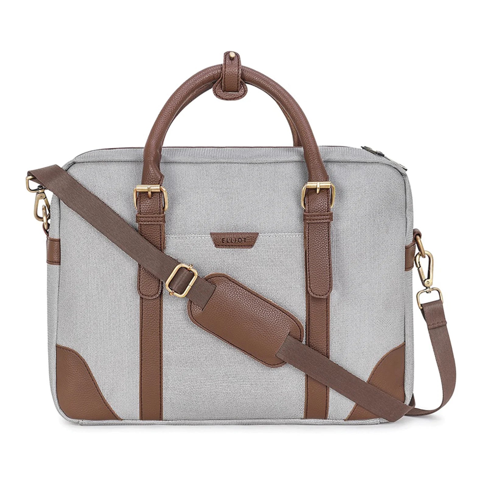 The Elliot Oxford Series Grey Vegan Leather Laptop Messenger Bag combines professional aesthetics with practical functionality for modern professionals and students. Crafted from premium imported vegan leather, this unisex messenger delivers a sophisticated look while maintaining eco-conscious values—offering durability without animal products. The thoughtfully designed interior accommodates laptops up to 14 inches in a padded sleeve, with a spacious main compartment, inner zip pocket, and exterior zip pocket for systematic organization. The detachable, adjustable shoulder strap provides flexible carrying modes: crossbody for commutes, shoulder carry for casual wear, or briefcase-style for formal settings. Lightweight yet robust, this messenger bag serves equally well in corporate environments, academic settings, or daily travel scenarios. Its refined grey tone and clean lines ensure versatility across professional wardrobes while the vegan leather construction resists wear and maintains its appearance over time.