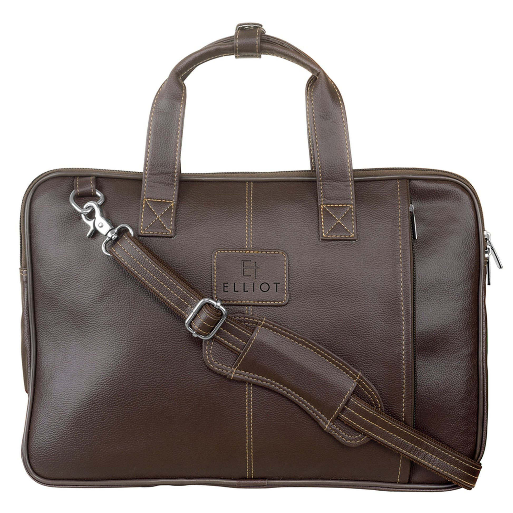 The Elliot ELB-Sleek-09 represents refined functionality for the discerning professional. Handcrafted from premium imported vegan leather, this slim messenger accommodates laptops up to 15 inches while maintaining an elegant, minimalist aesthetic. The thoughtfully designed interior includes dedicated compartments—zip pocket, mobile holder, and dual pen loops—ensuring organized access to essentials. An exterior zip pocket provides convenient quick-retrieval storage. The sophisticated brown finish and streamlined silhouette adapt effortlessly across professional environments, from office settings to business travel. Unisex in appeal and environmentally conscious in construction, this bag delivers both style and substance for the modern workplace.