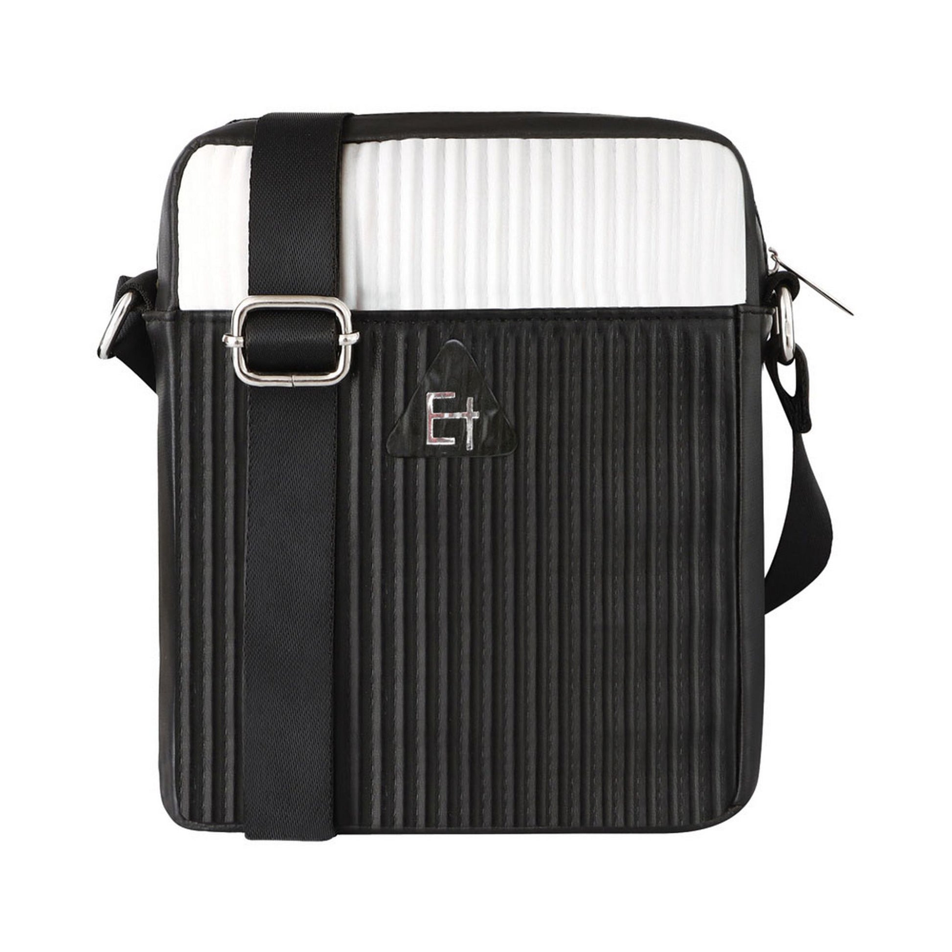 The Elliot EMB-STRIPES-0102 Messenger Bag combines contemporary design with practical functionality. Crafted from premium vegan leather, this sling bag showcases a distinctive ribbed vertical texture that adds tactile sophistication. The striking two-tone aesthetic—crisp white upper section paired with bold black lower half—delivers modern visual contrast suitable for professional and casual settings alike. Engineered for everyday utility, the bag features a generously proportioned main compartment accommodating essentials such as smartphones, wallets, chargers, and personal accessories. Two strategically positioned Velcro pockets—one front-facing and one rear-mounted—provide quick-access storage for frequently needed items, eliminating the need for constant rummaging. The durable vegan leather construction ensures longevity while maintaining an ethical, sustainable approach to fashion-forward accessories.