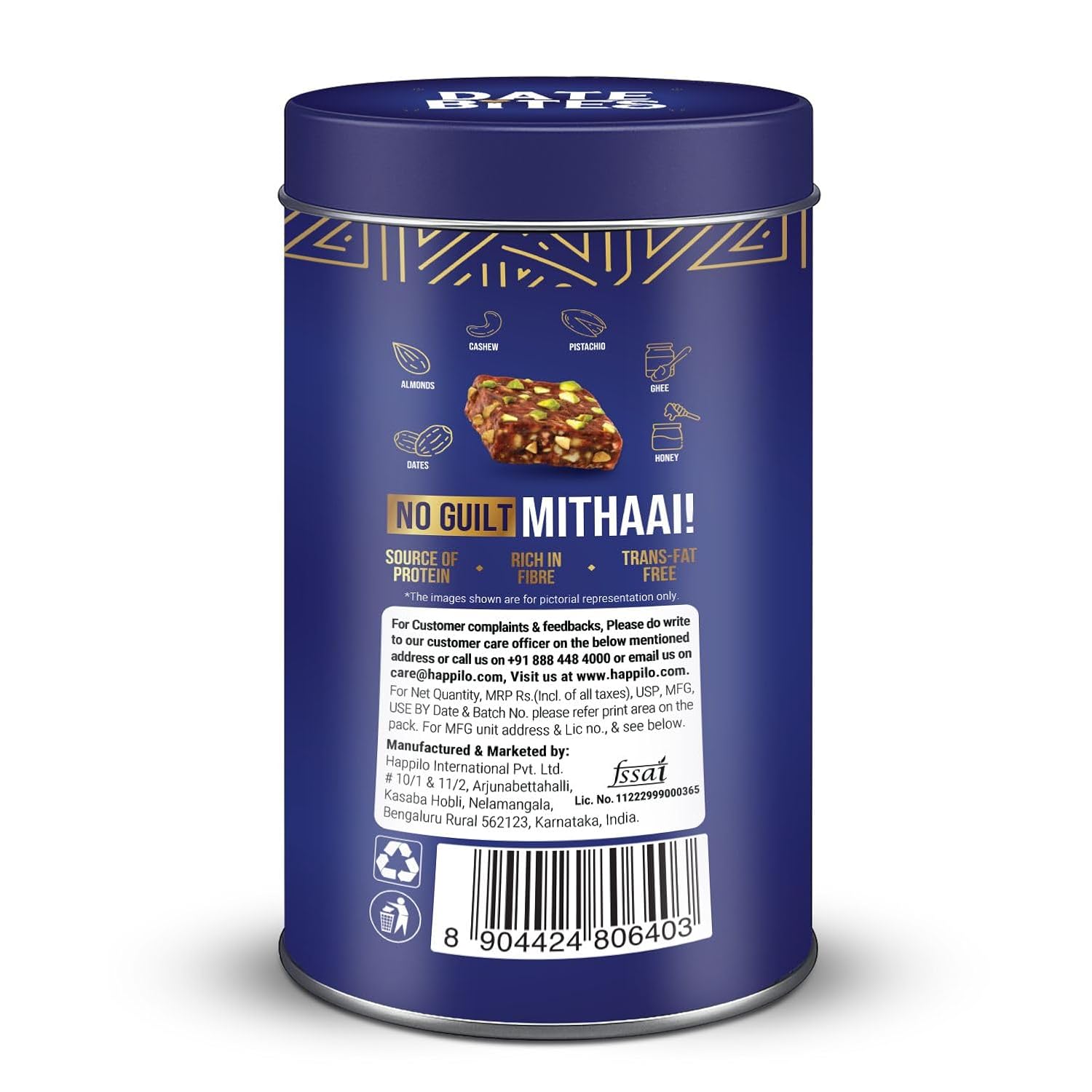 Happilo Date Bites Tin Premium Gift combines the finest dates, cashews, Californian almonds, pistachios, natural honey, and pure ghee to deliver a rich, nutritious treat. These bites offer a balanced mix of fiber, healthy fats, and natural sweetness, supporting both indulgence and well-being. Presented in an elegant gift box, they serve as a distinguished option for festivals, celebrations, or special occasions, reflecting premium quality and thoughtful gifting.