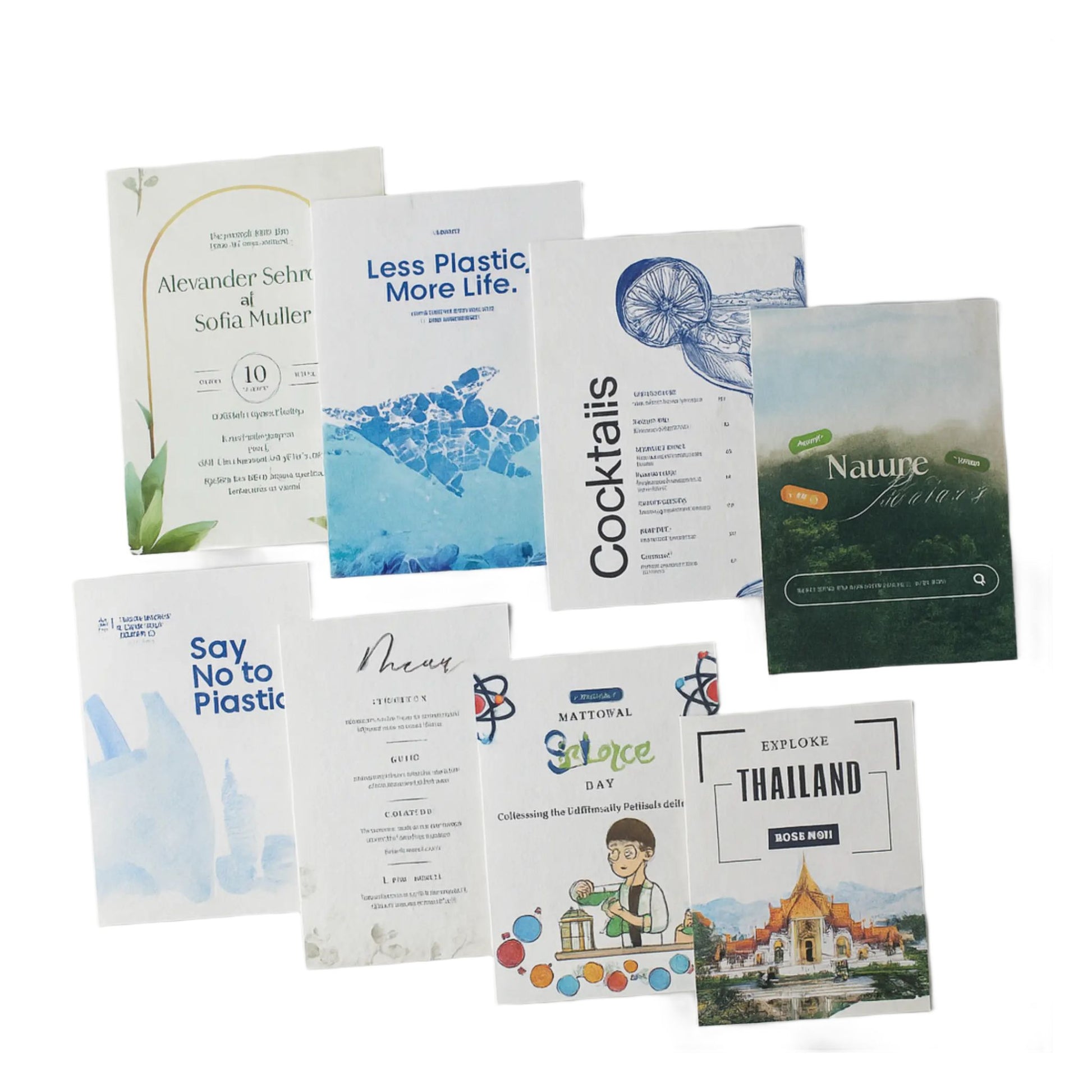 This 5"x7" seed paper features single-side printing and can be custom-designed to suit your needs. Made from biodegradable materials embedded with seeds, it effortlessly transforms into vibrant plants when planted. Ideal for eco-friendly invitations, cards, or promotional materials, this product combines sustainability with creativity, offering a meaningful and environmentally conscious way to engage recipients.