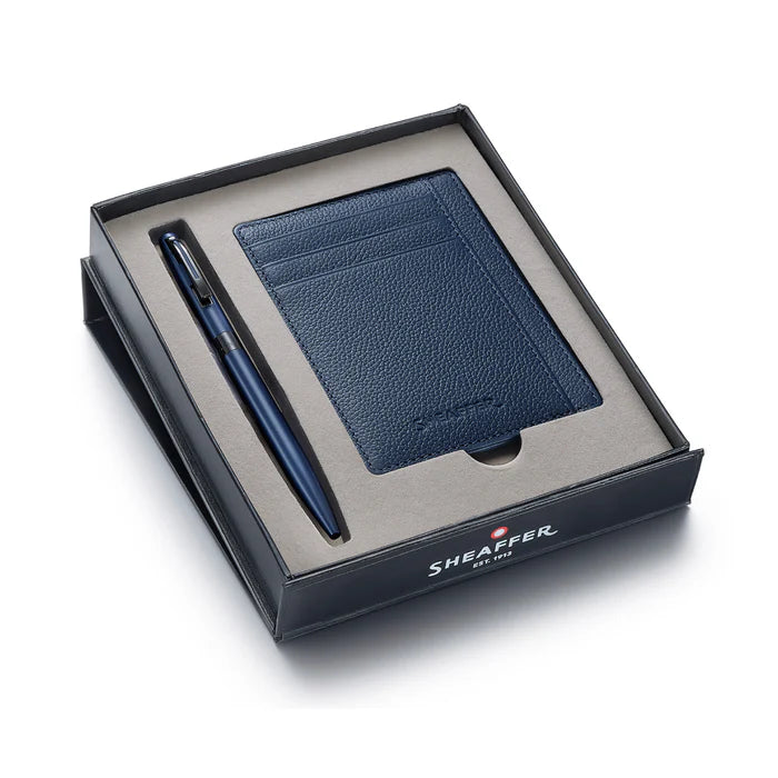 Sheaffer Gift Set ft. Matte Blue Reminder 9018 Ballpoint Pen with Black Trims and Sapphire Night Credit Card Holder
