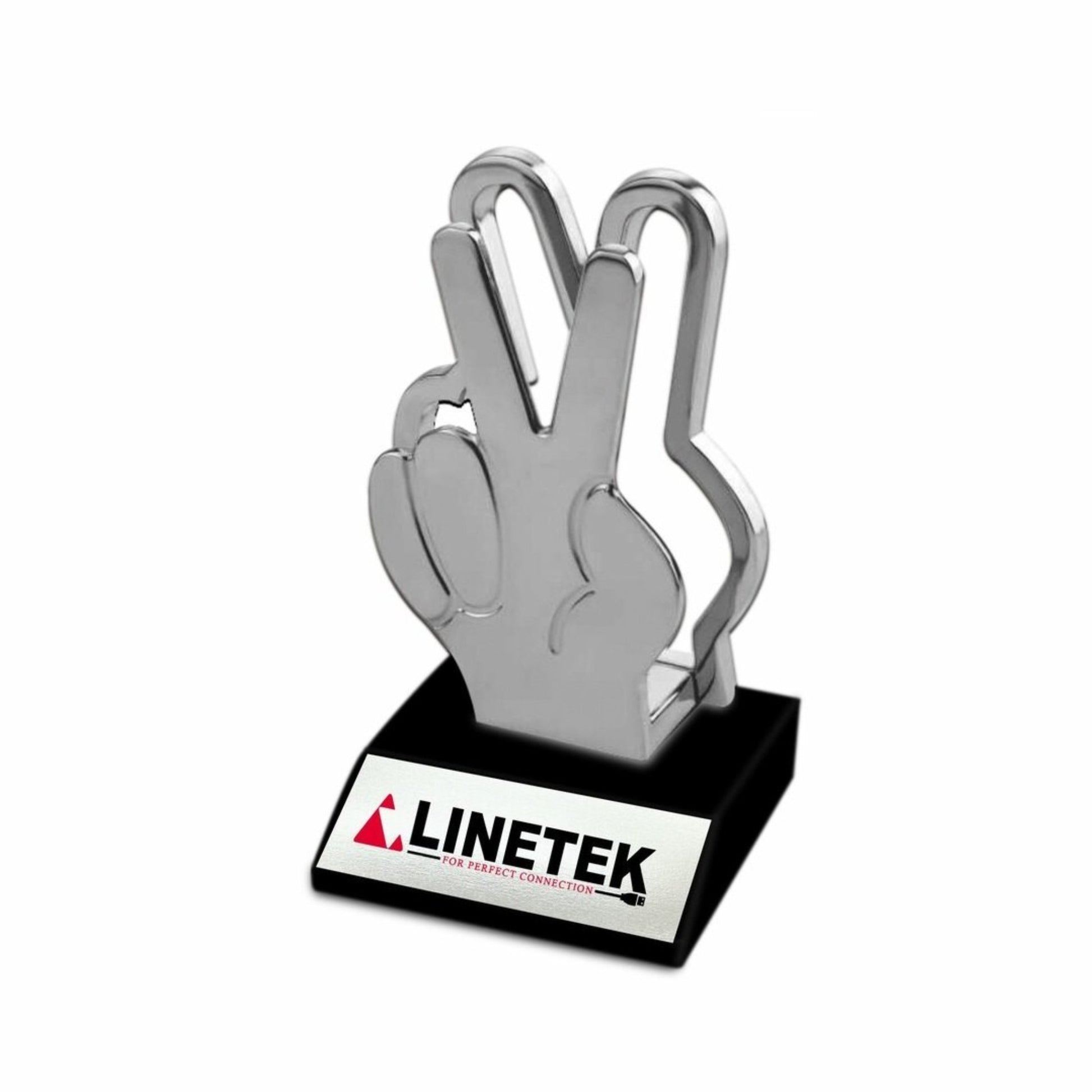 A striking silver hand sculpture captures the universal victory gesture, embodying triumph and positive momentum. Crafted with meticulous detail, this memento features a polished finish that commands attention on any desk or shelf. The sturdy weighted base ensures stability, while an engraved branding plate allows for personalized recognition. Ideal for corporate awards, milestone celebrations, or motivational gifts, this piece communicates achievement and forward progress. A sophisticated choice for acknowledging excellence and inspiring continued success.