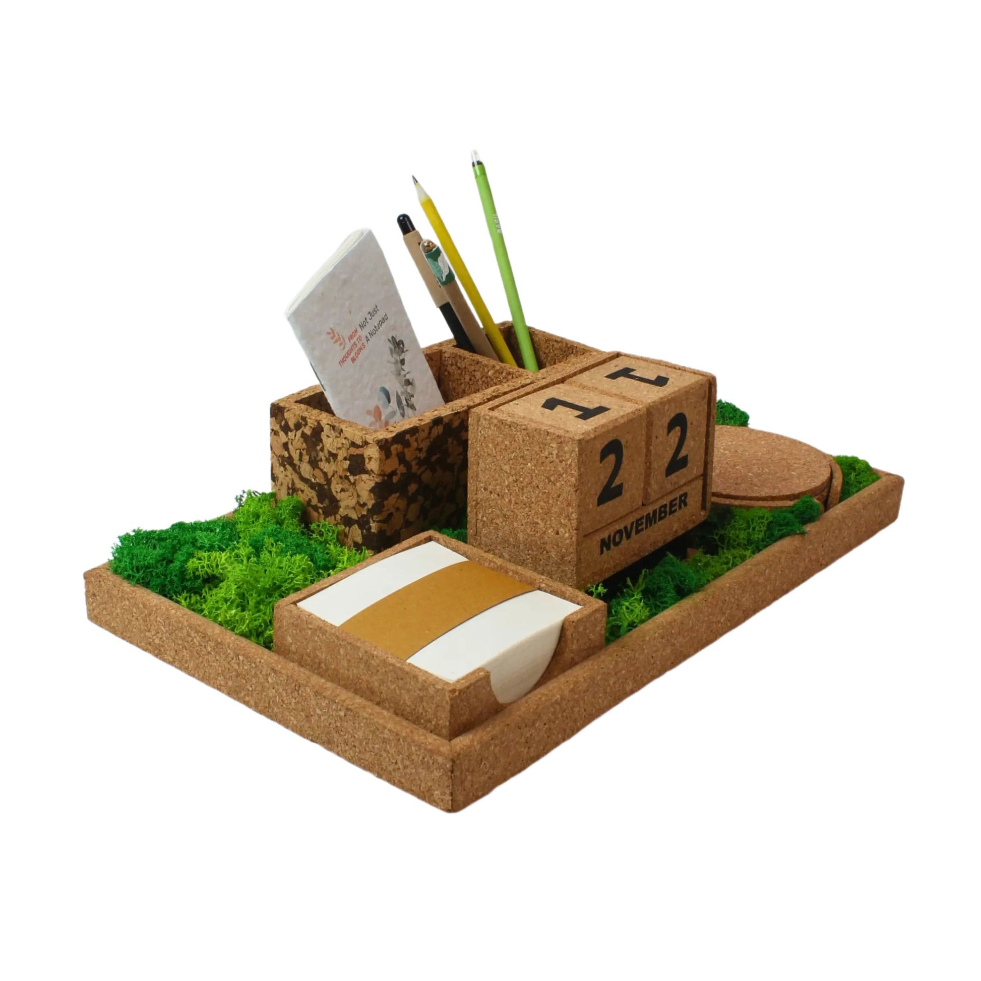 The Grove Executive XL is a 9"x15" cork tray designed for comprehensive desktop organization. Its executive forest design pairs natural cork with multi-utility compartments, allowing seamless management of stationery and essentials. This tray enhances workspace efficiency by keeping your desk orderly and items within easy reach, making it an indispensable accessory for professionals seeking both style and functionality.